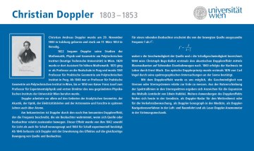 1822 begann Doppler seine Studien der Mathematik, Physik und Geometrie am Polytechnischen Institut (heutige Technische Universität) in Wien. 1829 wurde er dort Assistent für höhere Mathematik. 1835 ging er als Professor an die Realschule in Prag und wurde 1841 Professor für Praktische Geometrie am Polytechnischen Institut in Prag. Ab 1848 war er Professor für Praktische Geometrie am Polytechnischen Institut in Wien, bis er 1850 von Kaiser Franz Josef zum Professor für Experimentalphysik und ersten Direktor des neu gegründeten Physikalischen Instituts der Universität Wien berufen wurde.