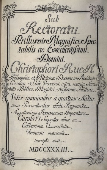 Magister sanitatis in Wien; 1705, 1709 Prokurator der Rheinischen Nation