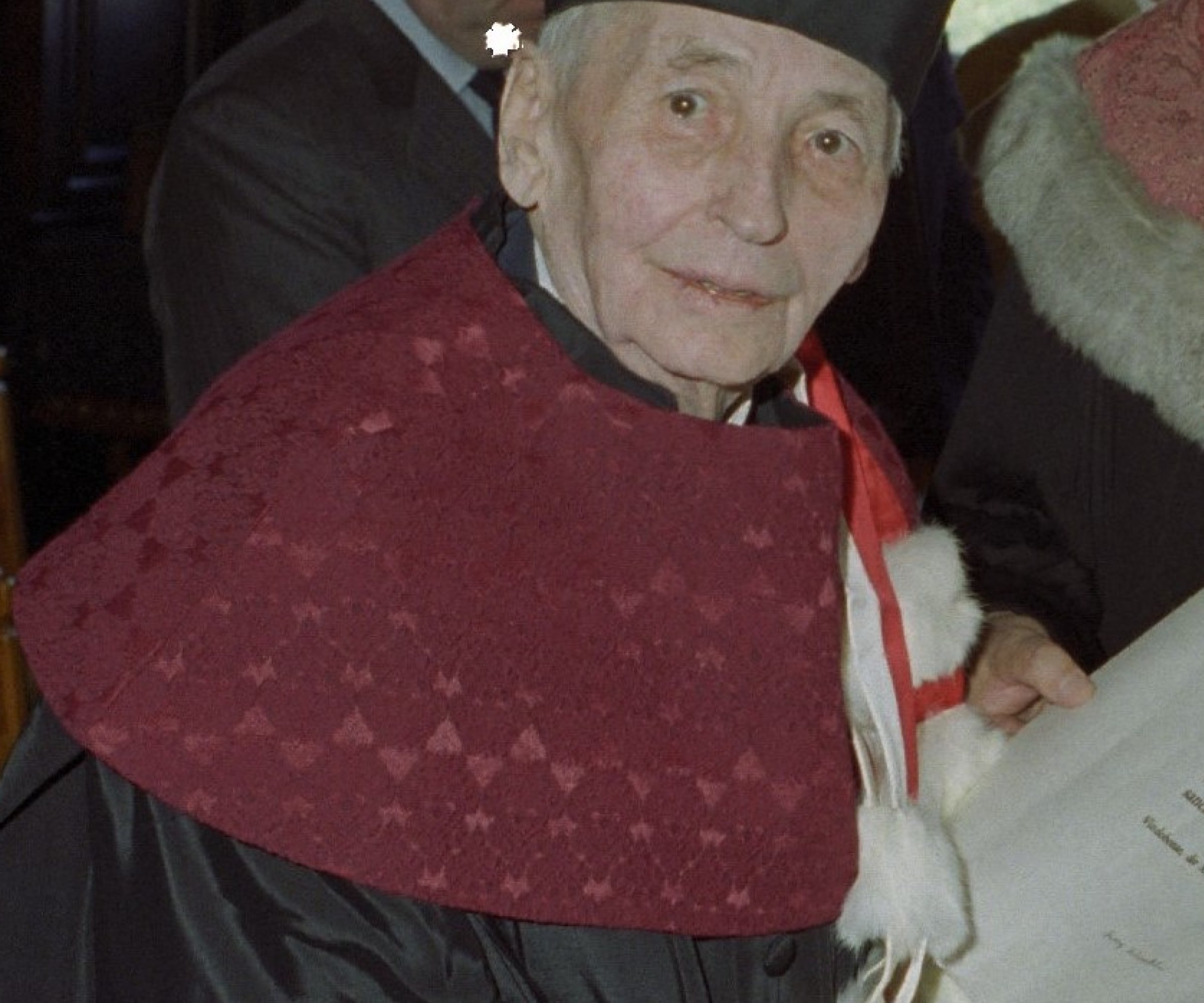 Günther Beitzke bei der Verleihung des Ehrendoktorats durch Dekan Walter Rechberger und Rektor Georg Winckler