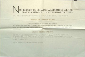 Daraufhin beantragte am 6. Mai 1982 der Dekan der Katholisch-Theologischen Fakultät Prof. Josef Lenzweger bei Rektor Prof. Richard Plaschka die Verleihung der Ehrenbürgerschaft für Broermann zu stellen, der in diesem Jahr 85 alt wurde. Der Akademische Senat stimmte dem Vorschlag am 17. Juni 1982 zu er wurde am 25. November 1982 feierlich zum Ehrenbürger ernannt.
