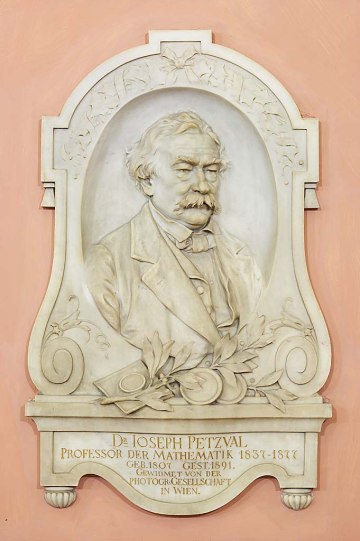 1835 Professor der höheren Mathematik an der Universität Pest, von 1837 bis 1877 in Wien. Petzval war Begründer der photographischen Dioptrik durch erstmalige Berechnung der nach ihm benannten lichtstarken Linsenkombination, wodurch die Belichtungszeit bei photographischen Aufnahmen stark reduziert werden konnte. 1840 konstruierte er das Petzvalobjektiv - das erste Porträtobjektiv mit 100 mm Brennweite.