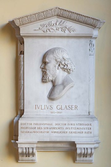Außerordentlicher Professor des Strafrechts 1856, ordentlicher Professor 1860 bis 1867 und 1870/71. Justizminister 1871 bis 1879; seit 1879 Generalprokuraror am obersten Gerichts- und Kassationshof. Glaser publizierte zahlreiche Arbeiten auf dem Gebiet des Strafrechts und Strafprozesses, er gilt als Schöpfer der Strafprozessordnung von 1873. Als liberaler Reformer trat er besonders für die Einführung der Geschworenengerichte und die Abschaffung der Todesstrafe ein.
