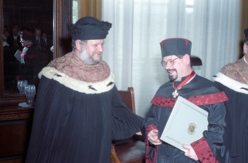 "in Würdigung seiner wahrhaft außerordentlichen Verdienste bei der Erstellung der Stellungnahme zum Rechnungshofbericht" bzw. im Wortlaut des Diploms: "QUI OFFICII MUNERIBUS SEMPER PLUS QUAM DEBUIT FUNCTUS SIBI MINIME PEPERCIT ITAQUE DE ALMA MATRE RUDOLPHINA EXIMIE MERITUS EST"