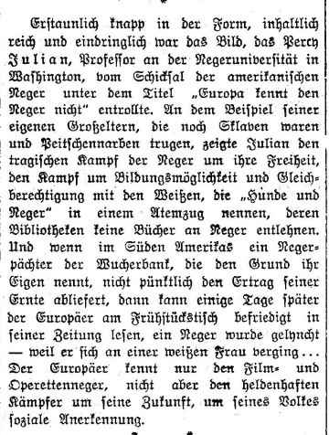 Zumindest eine gesetzlich verankerte vergleichbare Segregation wie in den USA existierte hier nicht, sodass Percy Julian als Afroamerikaner ohne Einschränkungen am Sozialleben teilhaben konnte, wie er später mehrfach berichtete.