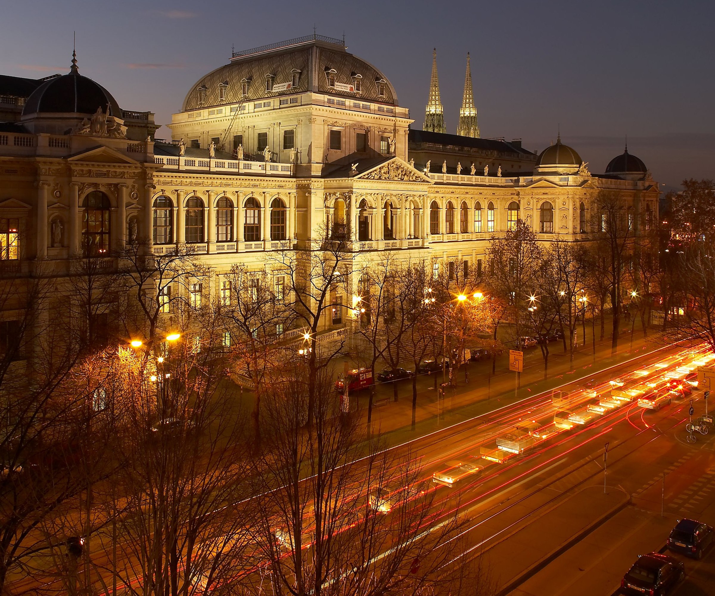 Schon bei der Gründung der Universität 1365 wurde für ihre Unterbringung Sorge getragen: Ein ganzes Viertel innerhalb der Stadtmauern, genannt "Pfaffenstadt", sollte für sie reserviert werden. Dieser ehrgeizige Plan konnte jedoch nicht verwirklicht werden. Erst 1385 erhielt sie mit dem Herzogskolleg (Collegium ducale) ein eigenes Gebäude innerhalb der Stadt in der Nähe des Stubentors, in dessen unmittelbarer Nähe sich bald teils neu errichtete, teils erworbene Häuser hinzugesellten. An ihrer Stelle wurde vom Jesuitenorden im 17. Jahrhundert für die Universität eine völlig neue, großzügig dimensionierte Anlage errichtet: Das Akademische Kolleg. Es existiert bis heute unter dem Namen "Alte Universität". Bis zur Mitte des 19. Jahrhunderts hatte die Universität Wien hier ihre Heimstatt. Die tiefgreifenden Reformen des Unterrichtswesens nach der Revolution 1848 und der daran anschliessende Aufschwung erforderten bald neue Räumlichkeiten. Das 1884 eröffnete Hauptgebäude an der Ringstraße im Neo-Renaissance-Stil sollte als "Palast der Wissenschaft" die gestiegene Bedeutung der Universität repräsentieren. Schon damals war es nicht mehr möglich, alle universitären Einrichtungen in einem einzigen Gebäude zu vereinigen. Gegenwärtig verteilen sich die wissenschaftlichen Einrichtungen der Universität Wien auf über 60 Standorte.