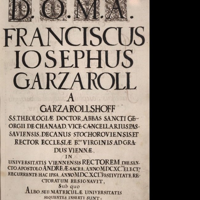 Rektorenblatt von Franz Josef Garzaroll von Garzarollshoff (Rektor 1690/91) Franz Josef Garzaroll von Garzarollshoff, Dr. art. lib., Dr. theol.
